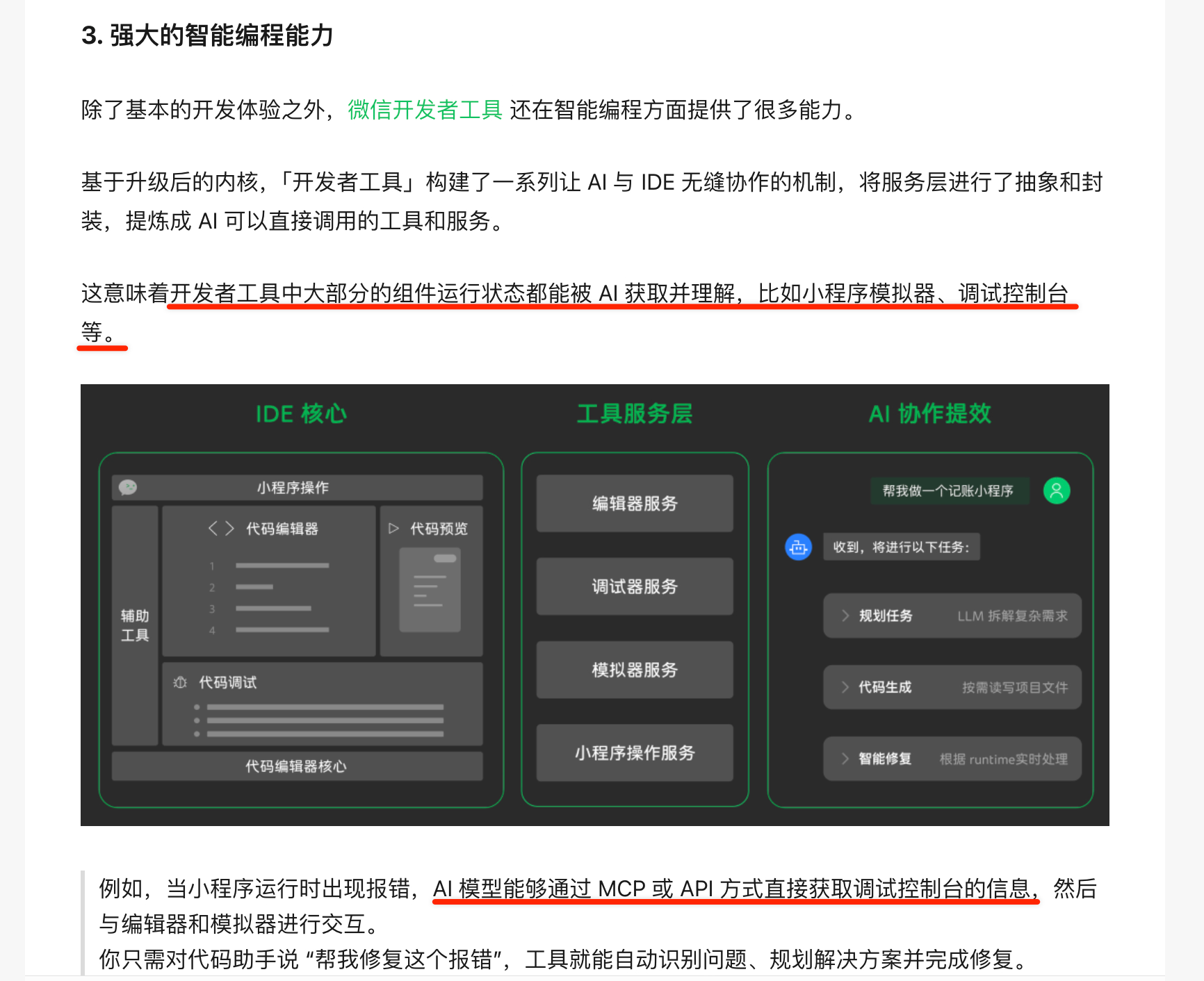 起因是前几天微信开放社区说微信开发者工具 2.0 发布了,据说有增强 AI 协作能力的封装